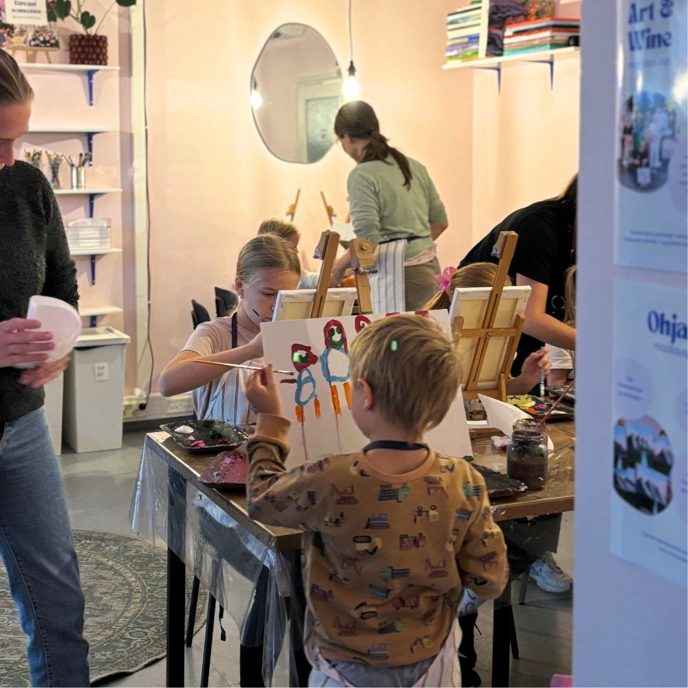 Synttäreiden aikana syntyy upeita maalauksia, naurua ja onnistumisen elämyksiä – jokainen saa mukaansa oman teoksensa muistoksi päivästä.