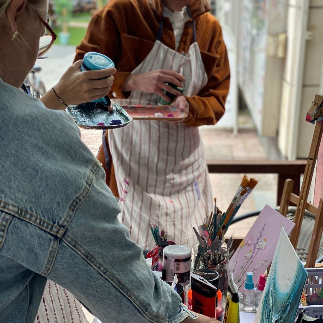 Taiteen ihailu ja luova tekeminen kuuluu kaikille taustaan katsomatta. Uskomme siihen, että kaikissa meissä asuu luova puoli, jota voit studiolla tutkia ja toteuttaa lähtötasosta riippumatta. Monella meistä taiteelliset kokemukset jäävät peruskoulun nappivesiväreihin, mutta laadukkailla välineillä ja opastuksella renossa ympäristössä voit saada uuden, hieman paremman kokemuksen omasta kädenjäljestäsi. Realistiset kuvat eivät ole ainut tapa maalata. Maalauspajoissamme voit etsiä omaa juttuasi - olipa se sitten väriyhdistelmät, abstraktit kuviot tai maalaus omasta lemmikistäsi.