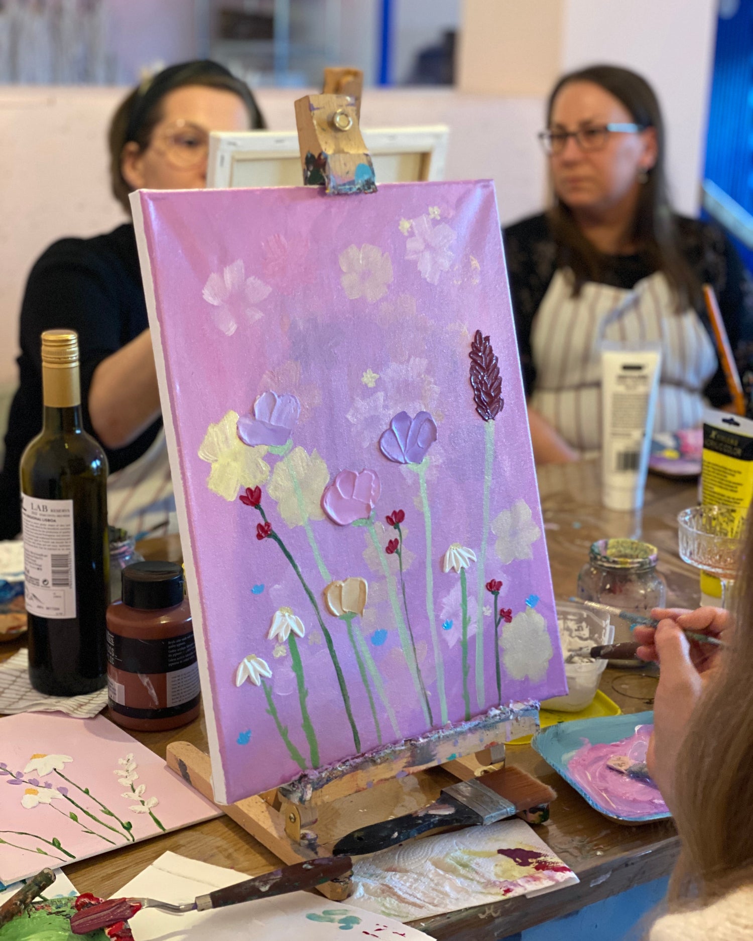 "Pidin todella paljon! Aluksi en olisi halunnut edes tulla, koska en ole aiemmin pitänyt maalaamisesta tai piirtämisestä, mutta tulin sitten viinin takia. Mutta viinihän unohtui miltei kokonaan juoda, koska maalaaminen vei niin mukanaan! Alun ohjeistus oli kattava ja siitä pääsi vauhtiin. Maalaaminen oli todella rentouttavaa." - Asiakaspalaute maalauspajasta.