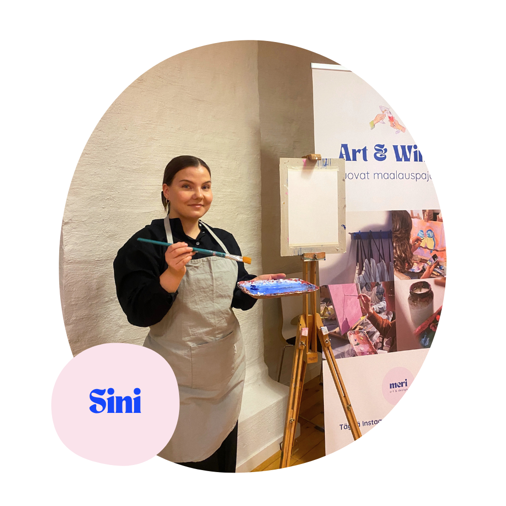 "Moikka! Olen Sini. Sydämeni on sykkinyt taiteelle jo pienestä pitäen: maalaaminen ja piirtäminen ovat kulkeneet mukanani vuosien ajan ja nykyään saan ilokseni toteuttaa tätä rakkautta myös työn kautta! Maalamisen ja neulomisen lisäksi hurahdin syksyllä kurpitsojen kaivertamiseen. Erityisen paikan sydämestäni on saanut Norjan vuoristot, joihin rakastuin vaihto-opiskelijana."