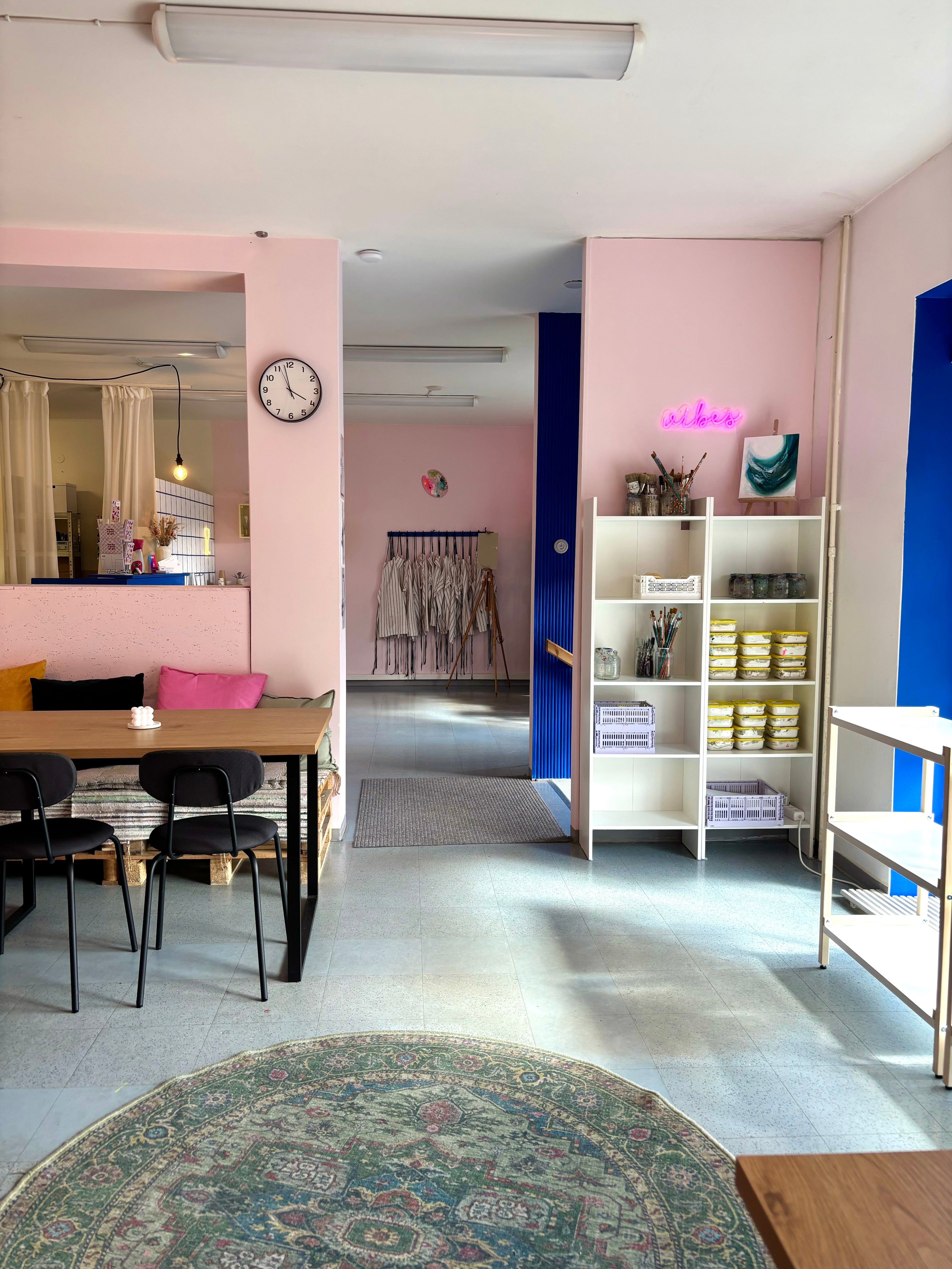 Haluaisitko järjestää asiakkaillesi tai kaveriporukallesi luovan työpajan itse ja tarvitset sopivat tilat? Studiollamme on puitteet 20 henkilön workshopille: